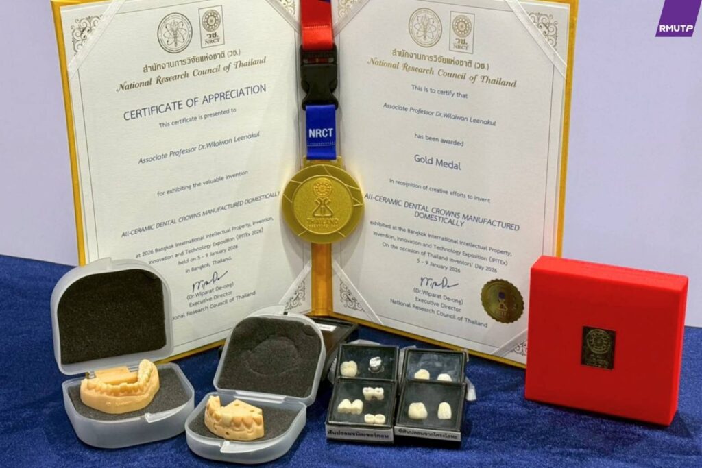 ภายใต้ชื่อผลงาน : ALL-CERAMIC DENTAL CROWNS MANUFACTURED DOMESTICALLY ในการประกวดเวทีสิ่งประดิษฐ์และนวัตกรรมนานาชาติ “2026 Bangkok International Intellectual Property, Invention, Innovation and Technology Exposition” (IPITEx 2026) ภายในงาน “วันนักประดิษฐ์” ประจำปี 2569 (Thailand Inventors’ Day 2026) เมื่อวันที่ 9 มกราคม 2569 ณ ศูนย์นิทรรศการและการประชุม ไบเทค บางนา