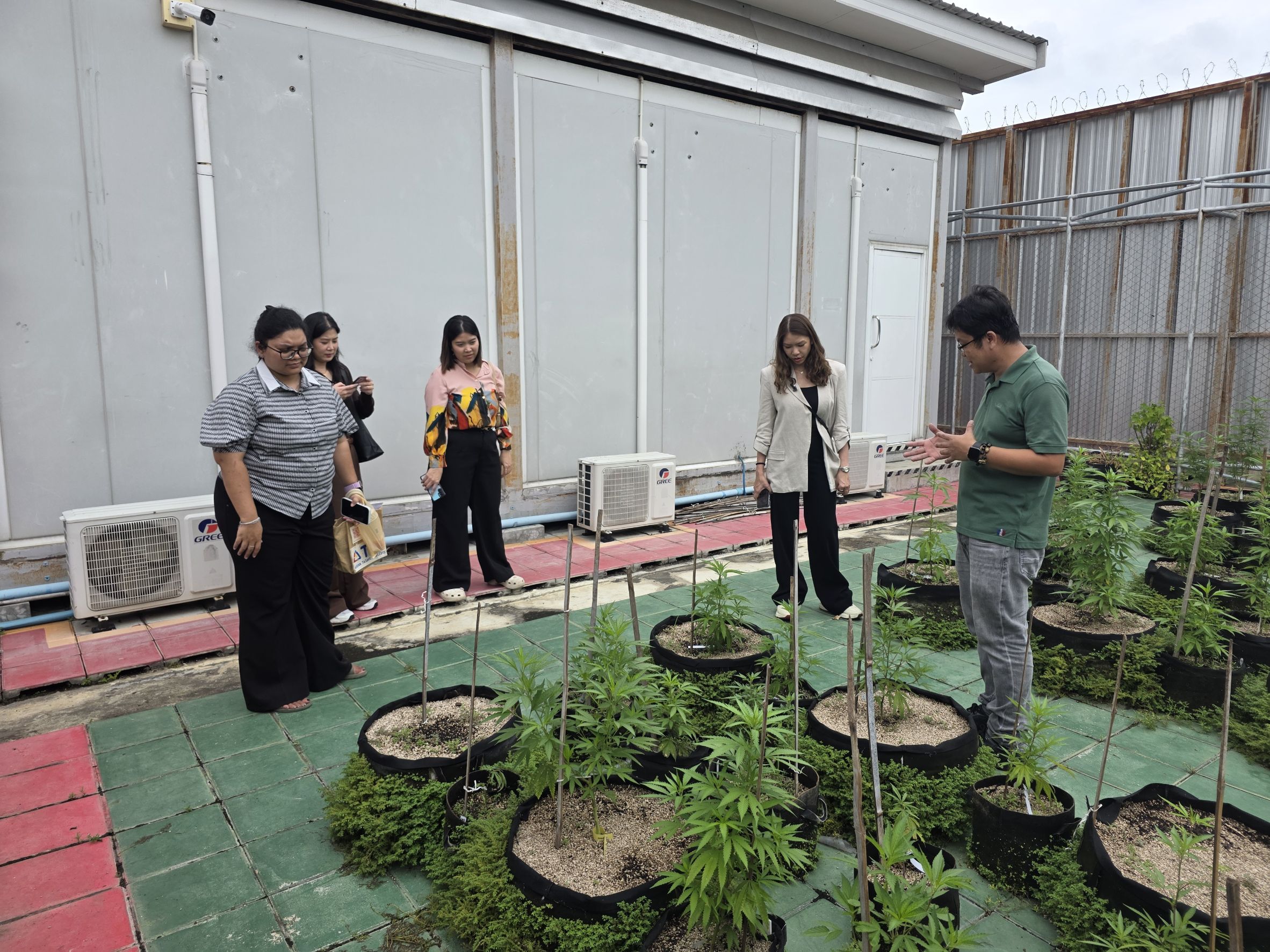 วันที่ 9 ตุลาคม 2568 คณะวิทยาศาสตร์และเทคโนโลยี มหาวิทยาลัยเทคโนโลยีราชมงคลพระนคร (ราชมงคลพระนคร) นำโดย อาจารย์ ดร.นฤดี สมิทธ์ปรีชา รองคณบดีฝ่ายบริหาร พร้อมผู้บริหาร ให้การต้อนรับผู้ช่วยศาสตราจารย์ศิริกาจญณ์ ติรสุวรรณวาสี ผู้ช่วยอธิการบดีฝ่ายการพัฒนาความสัมพันธ์ระหว่างประเทศ และทีมงานวิเทศสัมพันธ์ โดยมี อาจารย์ ดร.ไพศาล การถาง ได้พาคณะเข้าเยี่ยมชมโรงปลูกพืชกัญชาทางการแพทย์ และห้องปฏิบัติการศูนย์บริการวิเคราะห์ทดสอบมาตรฐานกัญชาและพืชเสพติดทางการแพทย์ CATSS ภายใต้ความร่วมมือระหว่าง บริษัท เอพิโซด วัน จำกัด เพื่อเป็นข้อมูลทางการศึกษาให้นานาประเทศ ซึ่งจะเป็นการเสริมสร้างความสัมพันธ์กับเครือข่ายพันธมิตรทางการศึกษาให้เข้มแข็ง สร้างความคล่องตัวในการประสานงานด้านต่างประเทศในอนาคต ณ คณะวิทยาศาสตร์และเทคโนโลยี ศูนย์พระนครเหนือ