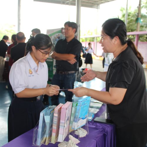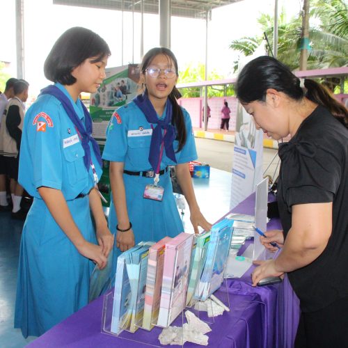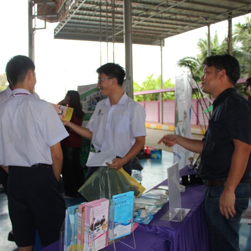 ภายในงานมีการจัดบูธประชาสัมพันธ์หลักสูตรจากสถาบันต่าง ๆ ซึ่งคณะวิทยาศาสตร์และเทคโนโลยี ได้เข้าร่วมจัดบูธประชาสัมพันธ์หลักสูตร ทั้ง 7 หลักสูตร โดยมีดร.พลกฤษณ์ คุ้มกล่ำ และนักศึกษาของสาขาวิชาวัสดุศาสตร์อุตสาหกรรม แนะนำหลักสูตรให้กับนักเรียนระดับมัธยมศึกษาตอนปลาย เพื่อเป็นทางเลือกการตัดสินใจเข้าศึกษาต่อในอนาคต
