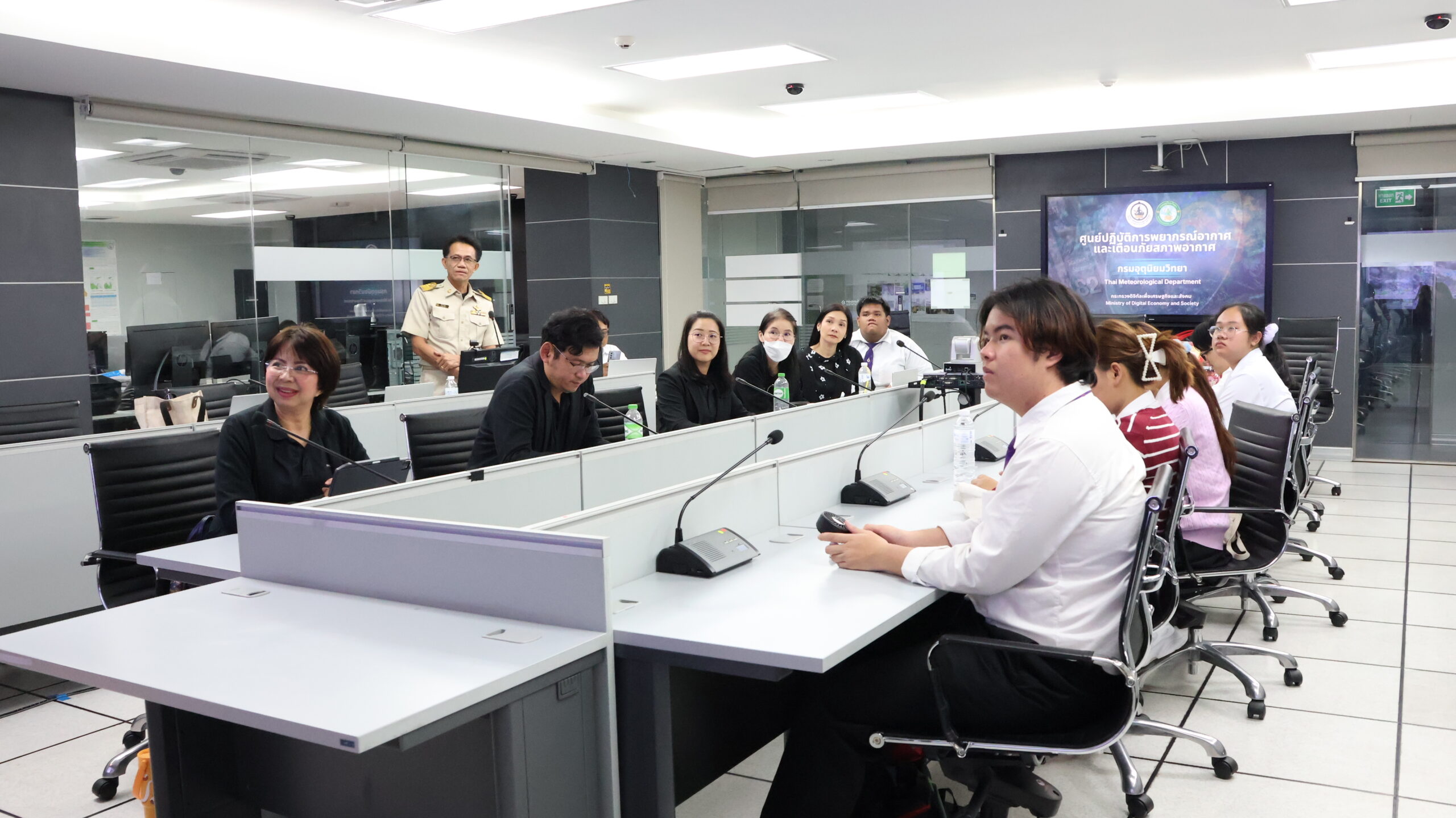 โดยมีผู้ช่วยศาสตราจารย์เพ็ญนภา สุวรรณบำรุง คณบดีคณะวิทยาศาสตร์และเทคโนโลยี พร้อมด้วย ผู้ช่วยศาสตราจารย์ ดร.สุนิสา สายอุปราช ผู้ประสานงานโครงการ คณาจารย์ และนักศึกษาหลักสูตรสถิติสารสนเทศ รวมถึงนักศึกษาหลักสูตรการจัดการสภาพภูมิอากาศและสิ่งแวดล้อม เข้าเยี่ยมชมและศึกษาดูงาน โดยได้รับเกียรติจากนายกมล พรหมสาขา ณ สกลนคร ผู้อำนวยการกองบริการดิจิทัลอุตุนิยมวิทยา ให้การต้อนรับ