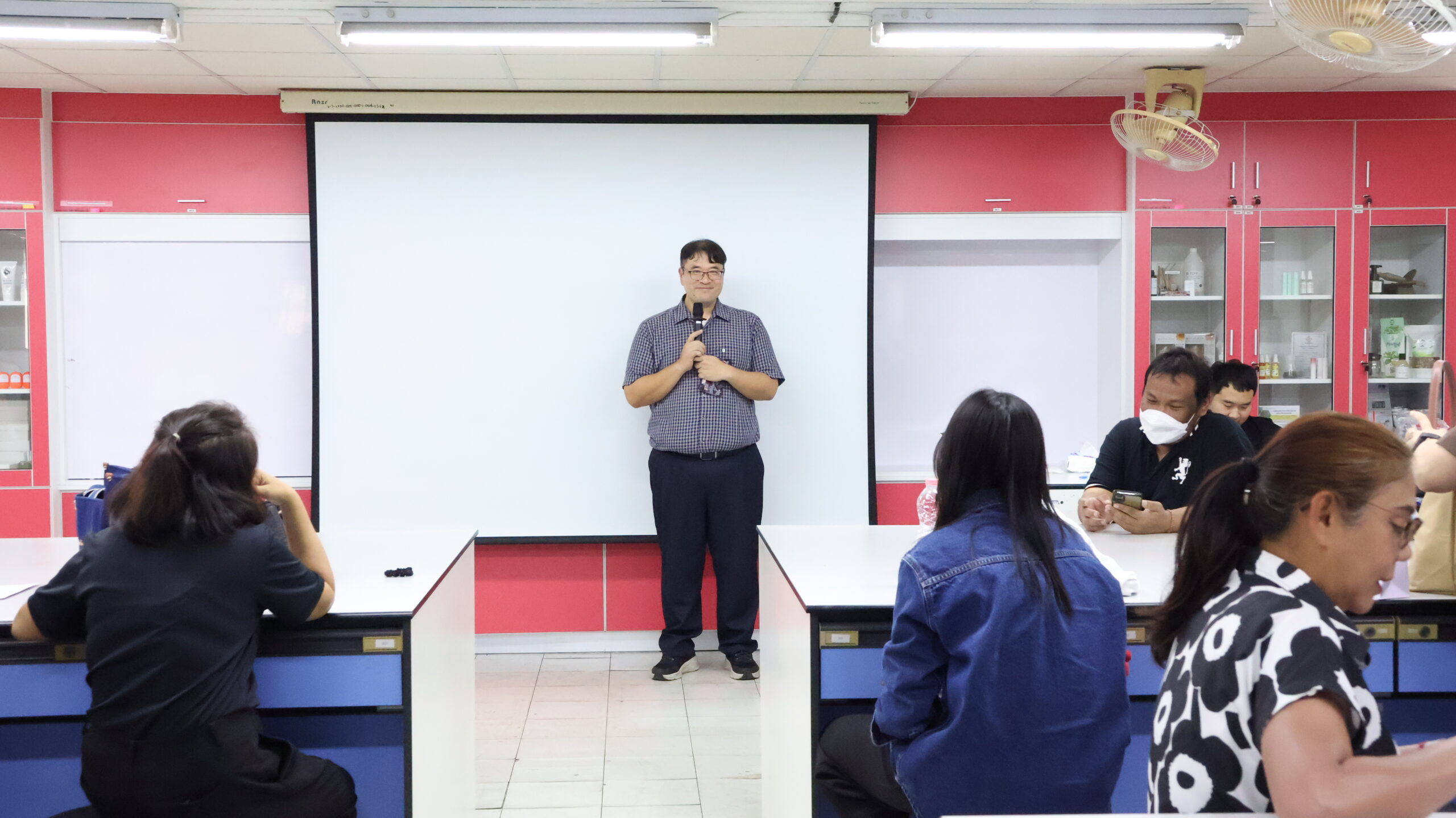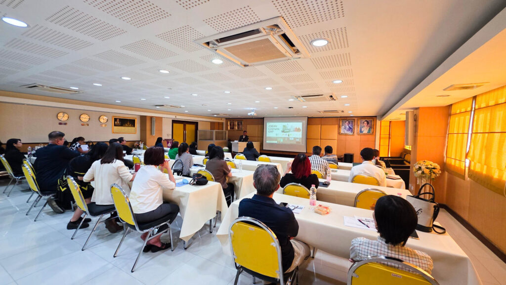 ทั้งนี้ ได้รับเกียรติจาก คุณพิทักษ์ พาพินิจ ผู้จัดการบริษัท เอ็มไอเอ็ม คอสแล็บ แมนูแฟคเจอริง จำกัด เป็นวิทยากรถ่ายทอดองค์ความรู้เกี่ยวกับหลักเกณฑ์วิธีการที่ดีในการผลิตเครื่องสำอาง (GMP) ข้อกำหนดสำคัญของ ASEAN Cosmetic GMP และแนวทางการพัฒนามาตรฐานระบบด้านสุขลักษณะที่ดีในการผลิตเครื่องสำอางตามมาตรฐาน GMP ASEAN Cosmetic และ ISO22716 พร้อมทั้งฝึกปฏิบัติการพัฒนาสูตร ร่วมกับบริษัท Rosrin และบริษัท Jusco ผลิตภัณฑ์เครื่องสำอางประเภทโลชั่นบำรุงผิวที่มีส่วนผสมจากสารสกัดธรรมชาติ เพื่อให้ผู้เข้าร่วมสามารถนำความรู้ไปประยุกต์ใช้ในการพัฒนาผลิตภัณฑ์ได้จริง