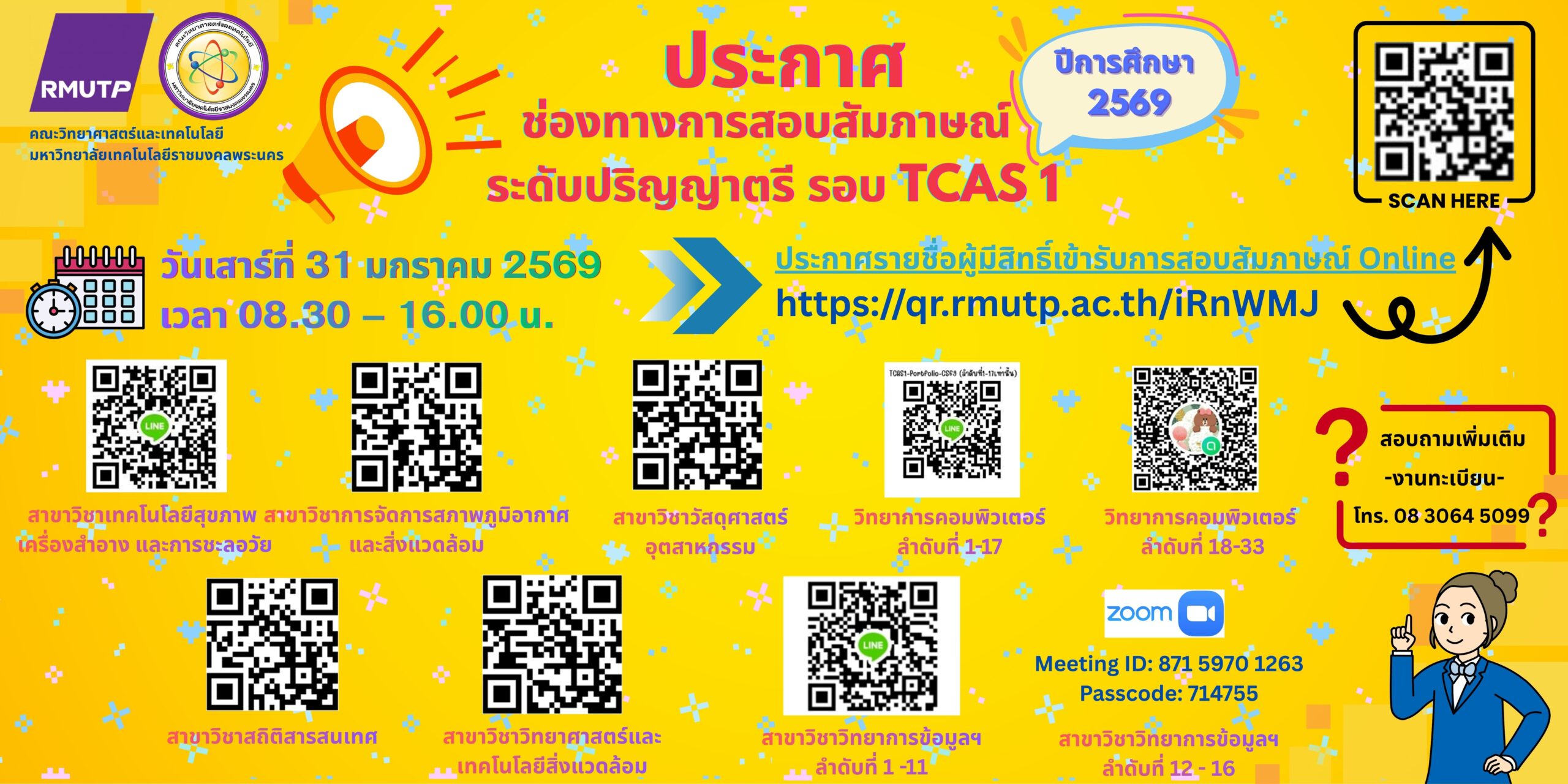 แจ้ง QR Code เข้ากลุ่ม Line สำหรับผู้มีสิทธิ์เข้ารับการสอบสัมภาษณ์ TCAS1 ป.ตรี ประจำปีการศึกษา 2569