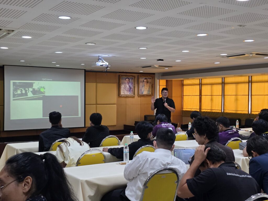 โครงการดังกล่าวจัดขึ้นเพื่อให้ความรู้เกี่ยวกับการบริหารจัดการเทคโนโลยีคอมพิวเตอร์ควอนตัม และส่งเสริมสนับสนุนให้บุคลากรตระหนักถึงภัยคุกคามทางไซเบอร์ที่อาจเกิดขึ้น รวมถึงแนวทางการใช้ระบบรักษาความปลอดภัยควอนตัมอย่างถูกต้อง โดยได้รับเกียรติจาก ดร.ภูมิพงศ์ ไชยวงศ์คต ศูนย์ความเป็นเลิศด้านฟิสิกส์ เป็นวิทยากรบรรยายหัวข้อ “การสื่อสารที่ปลอดภัยแบบควอนตัม (Quantum Secure Communication: QSC)”