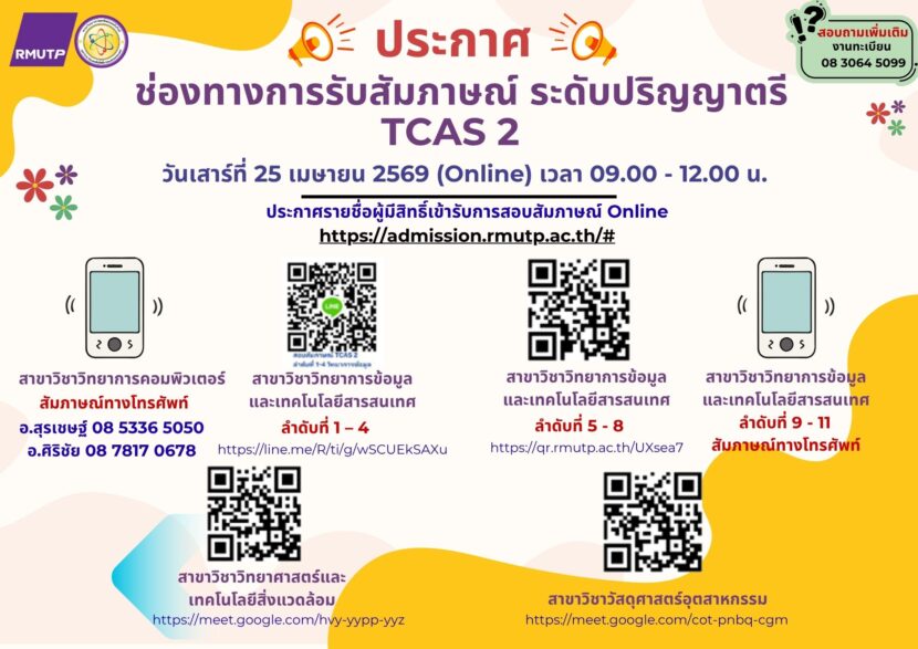 ประกาศช่องทางการสัมภาษณ์ TCAS รอบ 2 Quota