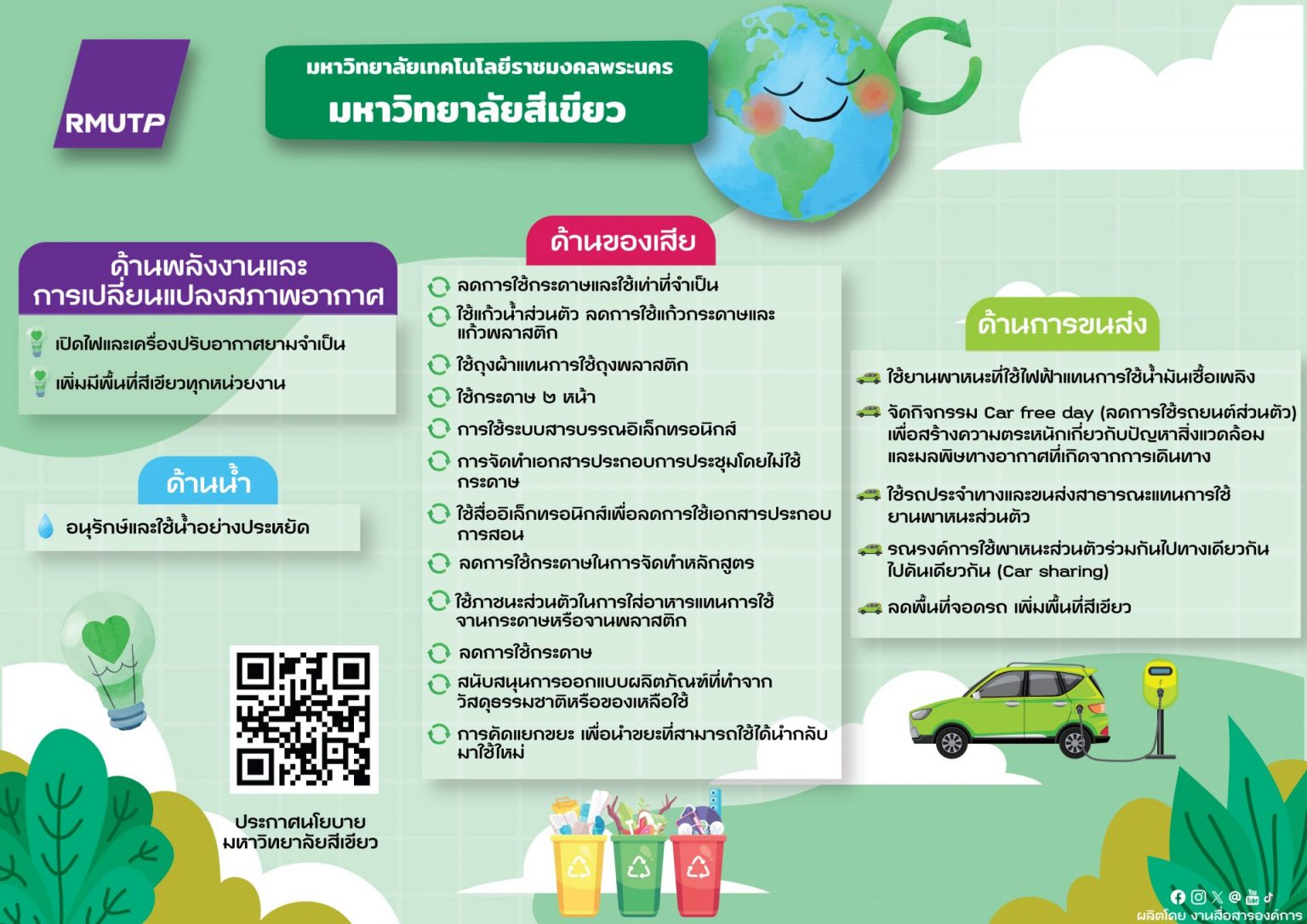 นโยบายสำนักงานสีเขียว นโยบายการเป็นมหาวิทยาลัยสีเขียว ประกาศ เรื่อง นโยบายการเป็นมหาวิทยาลัยสีเขียว ประจำปี 2567 FacebookFacebookXXLINELine