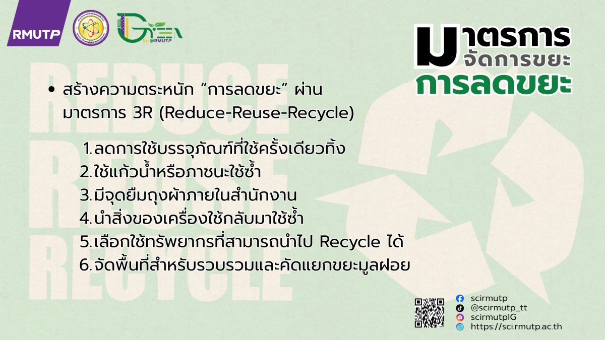 2. กำหนดมาตรการ ๓R (Reduce Reuse Recycle)