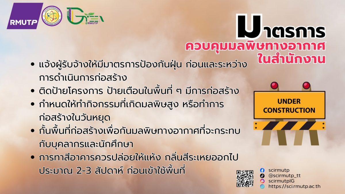 มาตรการการควบคุมมลพิษทางอากาศในสำนักงาน มาตรการรองรับฝุ่นละอองและสารเคมีจากการก่อสร้าง หรือปรับปรุงสำนักงาน
