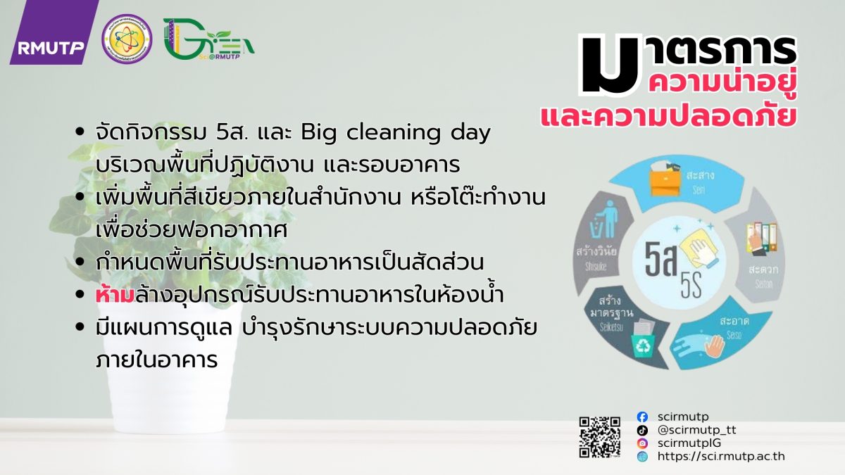 1. จัดกิจกรรม 5ส. และ Big cleaning day บริเวณพื้นที่ปฏิบัติงาน ห้องเก็บของ และบริเวณรอบอาคาร