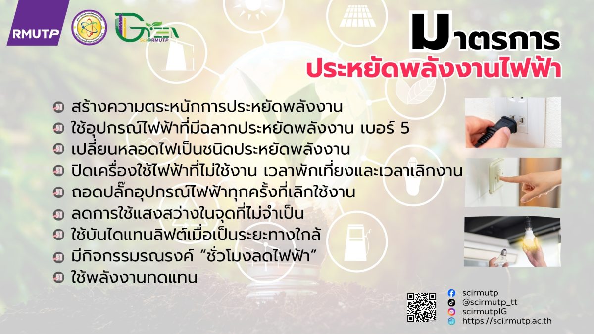 1. รณรงค์สร้างความตระหนักเรื่องการใช้ไฟฟ้า อุปกรณ์ไฟฟ้าอย่างถูกวิธี เพื่อการประหยัดพลังงาน