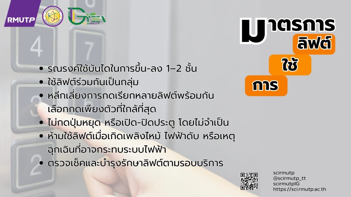 1. รณรงค์ให้ใช้บันไดแทนลิฟต์เมื่อเป็นระยะทางใกล้ เช่น 1–2 ชั้น