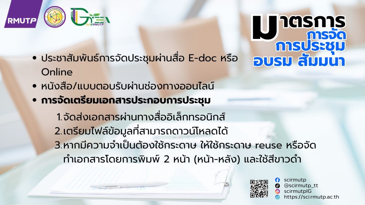 • ประชาสัมพันธ์การจัดประชุมผ่านสื่ออิเล็กทรอนิกส์ เช่น ระบบ E-document/E-mail /Line/Facebook เป็นต้น