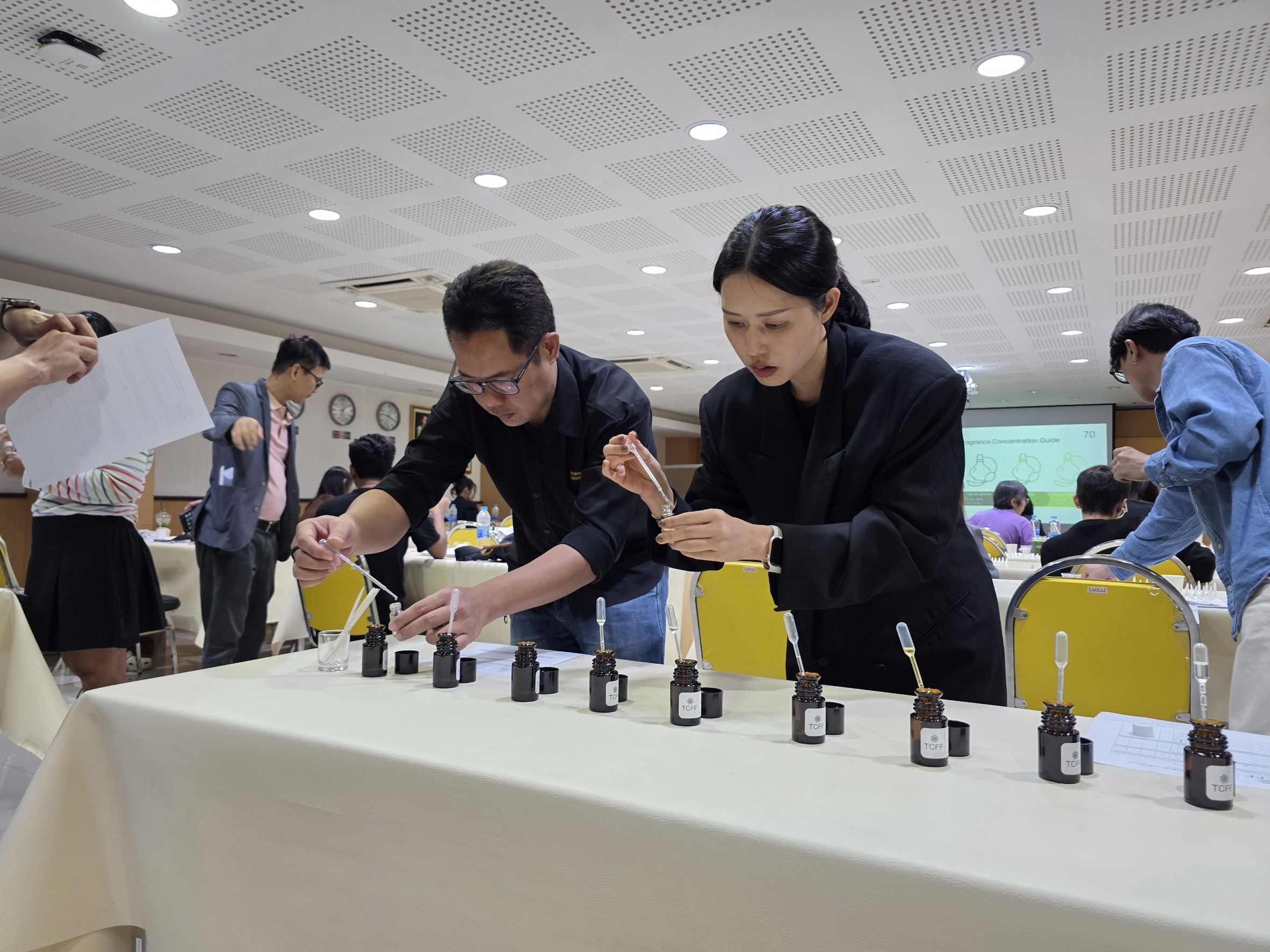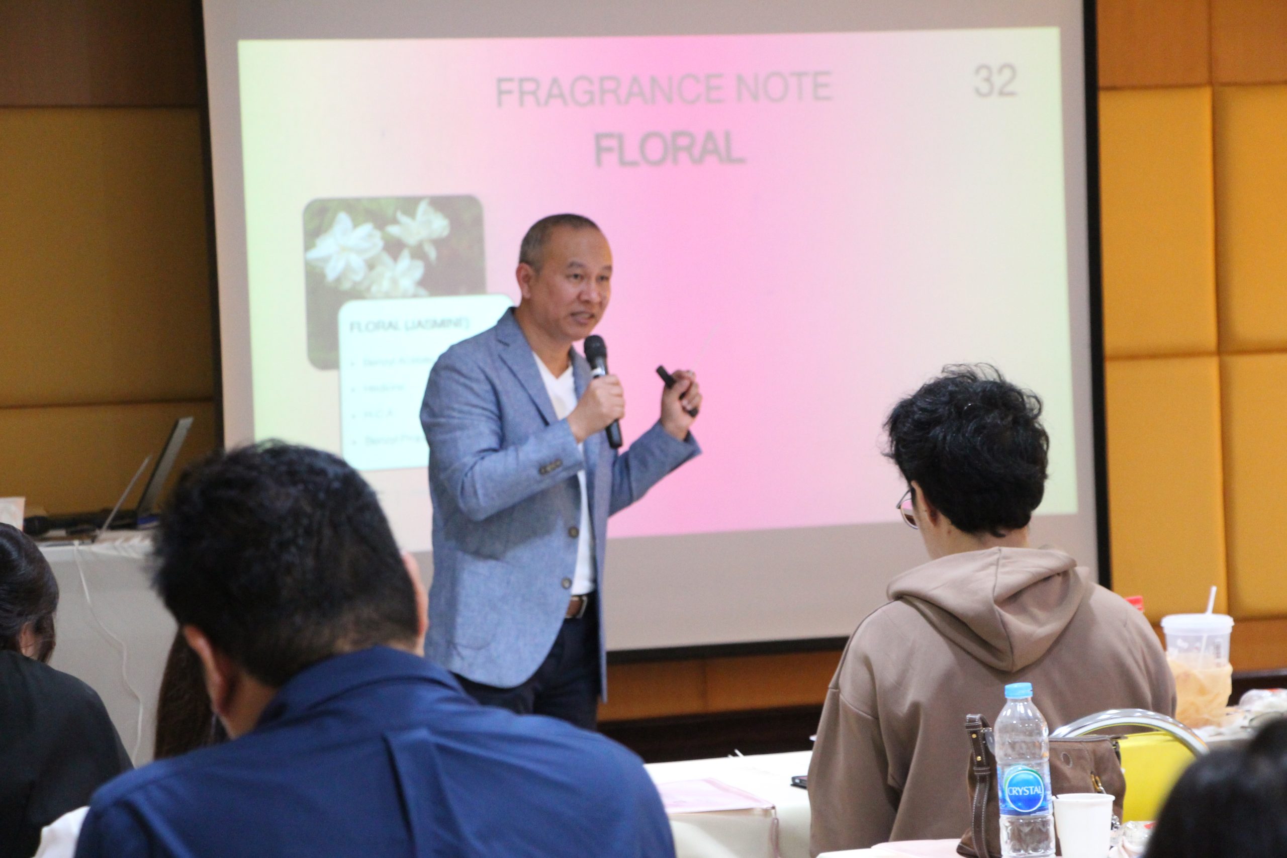 โครงการนี้มีวัตถุประสงค์เพื่อให้ผู้เข้าร่วมโครงการรู้จักและจำแนกแนวกลิ่นของเครื่องหอมและน้ำหอม รวมถึงการพัฒนาและสร้างสรรค์กลิ่นในผลิตภัณฑ์ โดยได้รับเกียรติจากคุณสนธิเดช แก้วสวัสดิ์ ผู้เชี่ยวชาญด้านเครื่องหอม บริษัทอุตสาหกรรมเครื่องหอมไทย-จีน จำกัด มาถ่ายทอดความรู้ เรื่องความรู้ทั่วไปเกี่ยวกับเครื่องหอม สารให้กลิ่นหอม ระดับแนวกลิ่น องค์ประกอบของกลิ่น แนวทางการปรุงกลิ่นน้ำหอม (Perfume) รวมถึงการฝึกปฏิบัติ การผสมน้ำหอม การปรุงกลิ่นสำหรับใช้ในผลิตภัณฑ์เครื่องสำอาง และแลกเปลี่ยนประสบการณ์ ตลอดจนให้คำปรึกษา ซึ่งการอบรมครั้งนี้ได้รับการตอบรับจากผู้ประกอบการ นักวิจัย นักวิชาการ ผู้ที่สนใจเริ่มต้นธุรกิจน้ำหอม รวมถึงตัวแทนจากภาครัฐ/รัฐวิสาหกิจ หน่วยงานภาคเอกชน วิสาหกิจชุมชน
