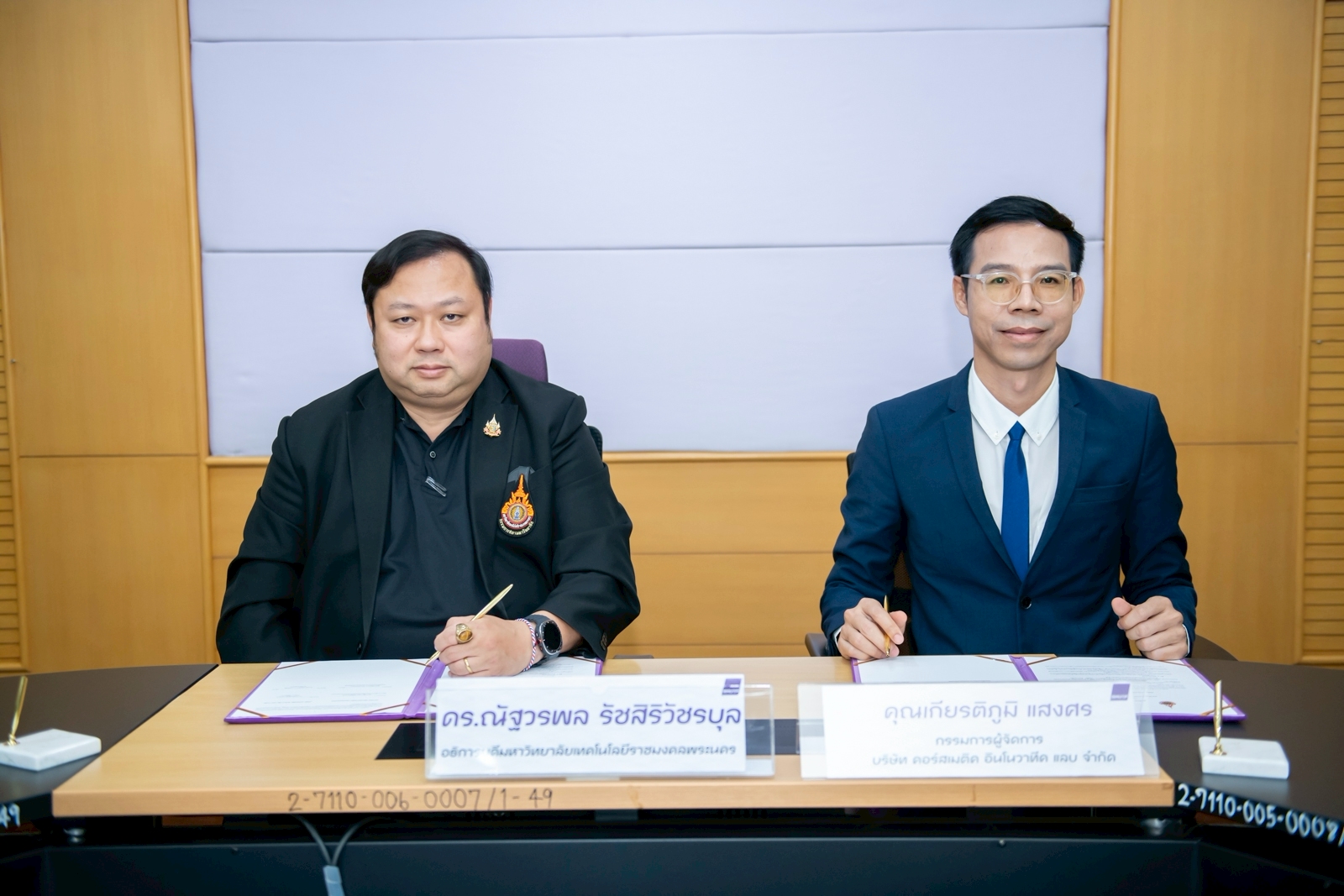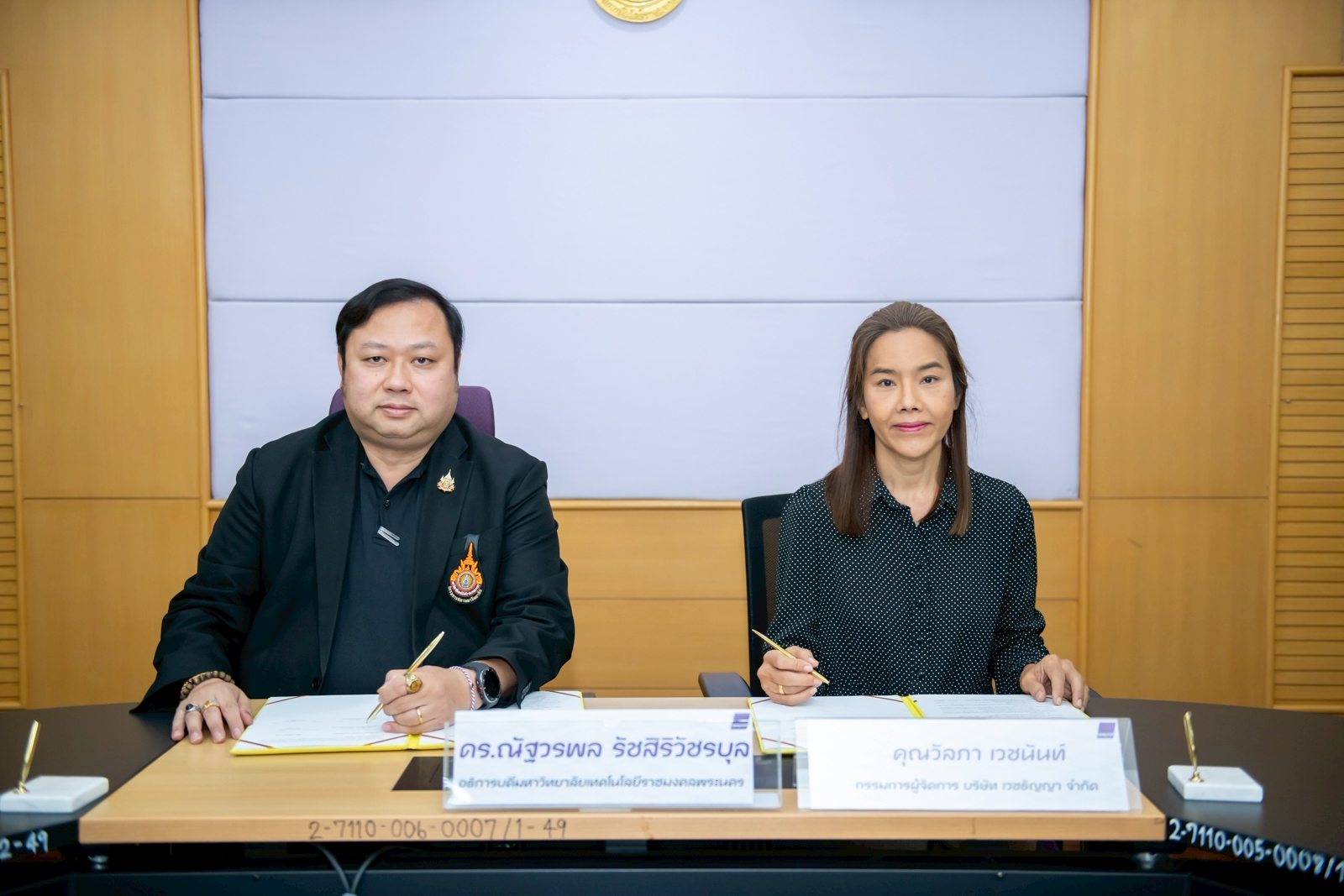 ดร.ณัฐวรพล รัชสิริวัชรบุล อธิการบดีมหาวิทยาลัยเทคโนโลยีราชมงคลพระนคร ลงนามบันทึกความเข้าใจ (MOU) ร่วมกับ 3 บริษัท ได้แก่ บริษัท คอร์สเมติค อินโนวาทีค แลบ จำกัด บริษัท โยแลนซ์ (ประเทศไทย) จำกัด และบริษัทเวชธัญญา จำกัด เมื่อวันที่ 7 เมษายน 2569 ณ ห้องประชุมรพีพัฒน์ ชั้น 3 อาคารรพีพัฒนศักดิ์ มหาวิทยาลัยเทคโนโลยีราชมงคลพระนคร ศูนย์เทเวศร์ โดยมี ผู้ช่วยศาสตราจารย์เพ็ญนภา สุวรรณบำรุง คณบดีคณะวิทยาศาสตร์และเทคโนโลยี พร้อมคณะผู้บริหาร และคณาจารย์สาขาวิชาเทคโนโลยีสุขภาพ เครื่องสำอางและการชะลอวัย เข้าร่วมเป็นสักขีพยานเพื่อแสดงเจตนารมณ์ในการขับเคลื่อนองค์ความรู้ร่วมกัน